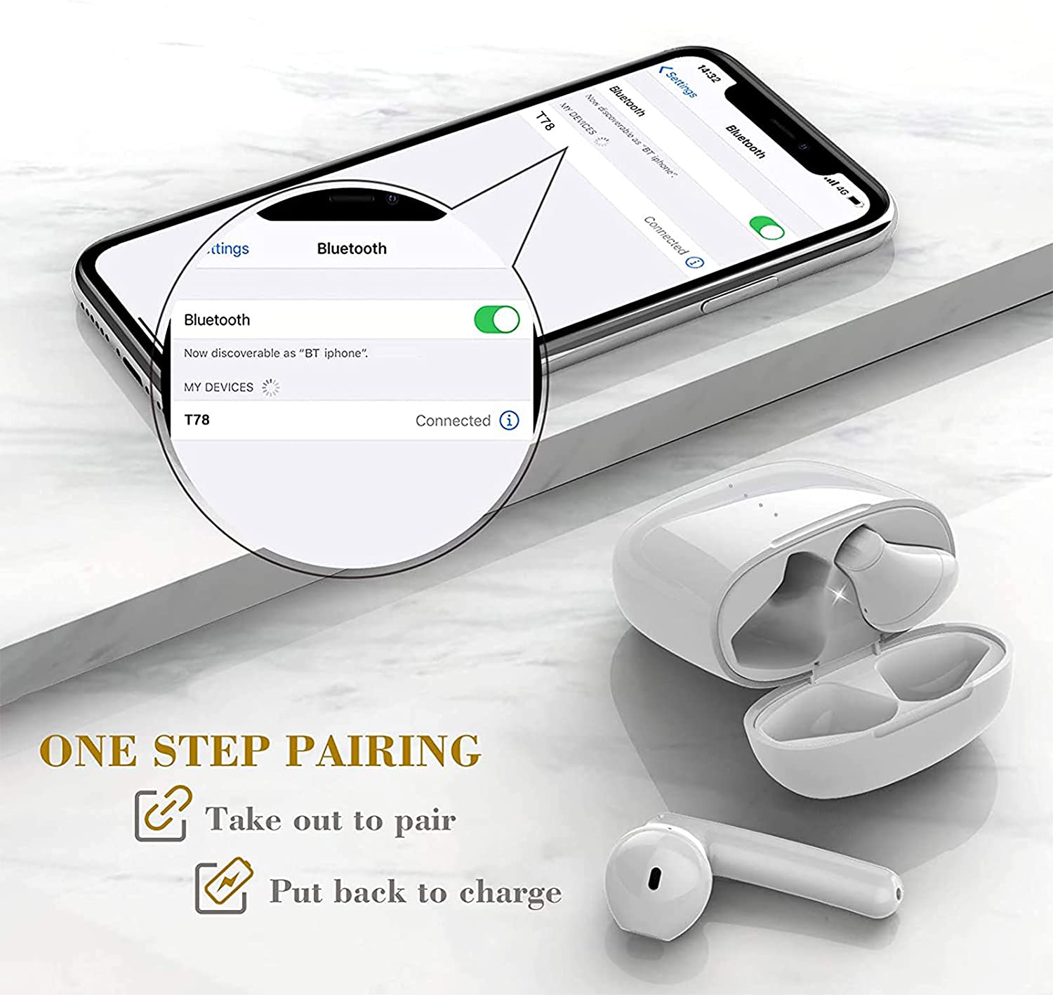 Wireless Earbuds Bluetooth 5.0 Headphones with Charging Case Noise Cancelling 3D Stereo Headsets Built in Mic in Ear Ear Buds IPX5 Waterproof Air Buds for iPhone/Android&Power Display (White)